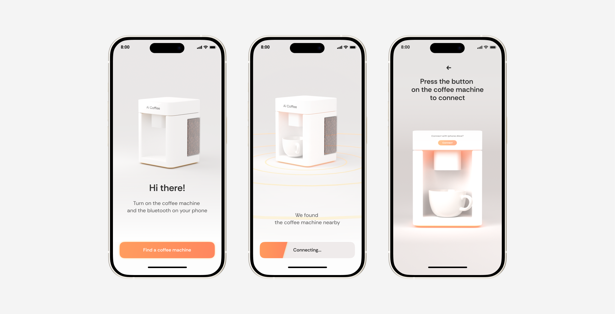 I prepared the app design and visualized the coffee machine myself. The AI assistant accurately determines the desired drink at the right time, prepares a shopping list and offers to recharge before going to bed in order to make fragrant fresh coffee in the morning.
